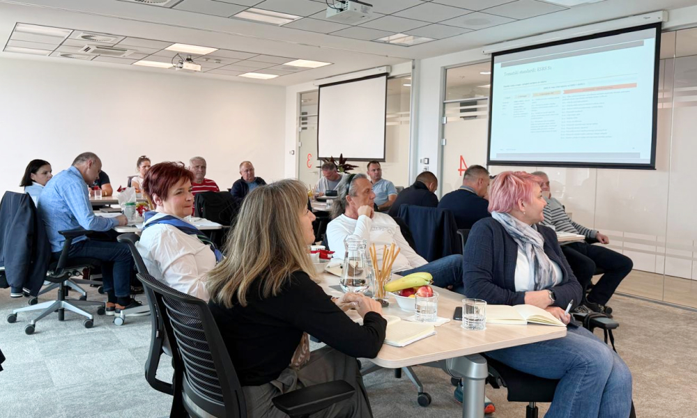Predavačice su pojasnile važnost ESG (okolišnih, društvenih i upravljačkih) kriterija i njihov rastući značaj u poslovanju te zakonodavnom okviru EU. Objasnile su ključne regulative poput CSRD-a, ESRS-a, SFDR-a i EU taksonomije, koje uvode obveze izvještavanja o održivosti i definiraju kriterije za održive aktivnosti. Poseban naglasak stavljen je na koncept dvostruke značajnosti, koji traži procjenu utjecaja poduzeća na okoliš i društvo te financijskih rizika i prilika povezanih s održivošću. Predstavljene su i novosti iz tzv. “Omnibus” paketa, kojima se nastoji smanjiti administrativno opterećenje tvrtki i uskladiti europske standarde s globalnima. Praktični dio obuke uključivao je metodologiju mapiranja lanca vrijednosti, identificiranja i procjene učinaka, rizika i prilika.
